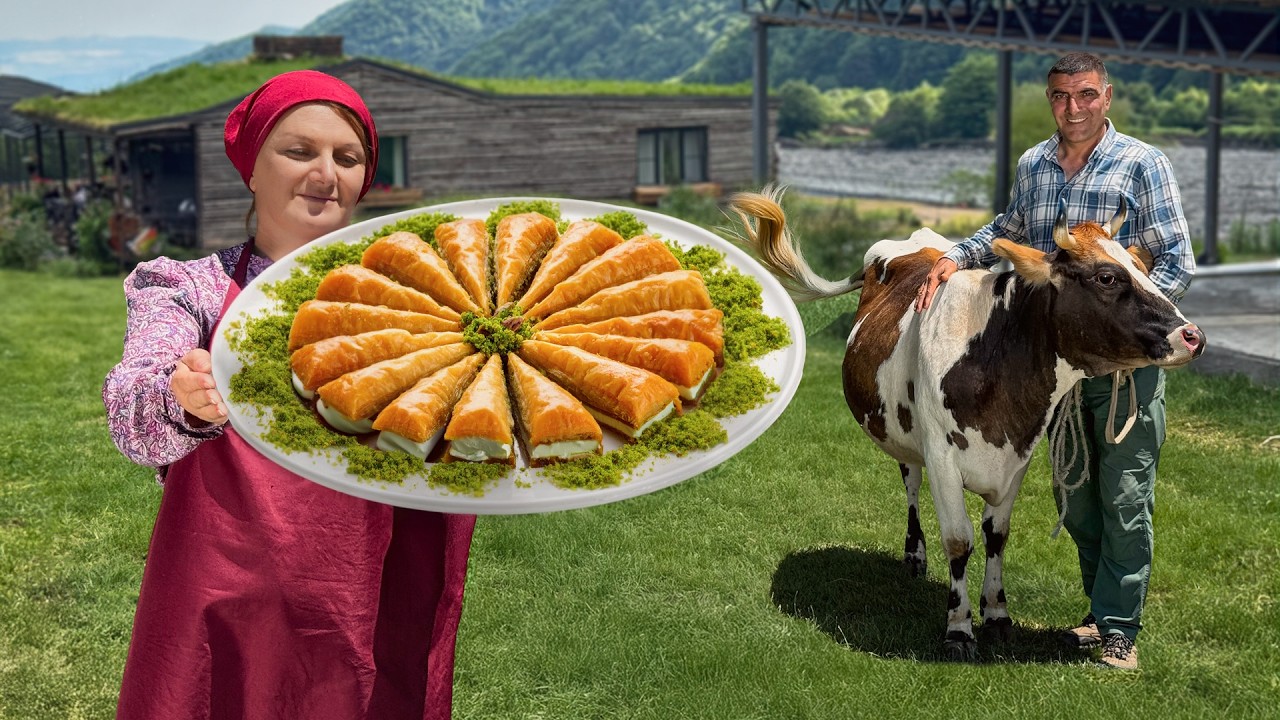 Making Oriental Pistachio Baklava with Ice Cream! Homemade Dessert Recipe